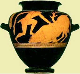 Desde entonces, el ejercicio venatorio debió de implicar un peligroso divertimento, donde el captor antes de dar muerte a su oponente, esquivaba sus afilados pitones arriesgando su vida con audacia y valor y recibiendo como premio la admiración y el respeto de la comunidad. Muchos milenios han transcurrido desde esos momentos iniciales. Las prácticas lúdico-cinegéticas fueron adoptando diversas modalidades, conformando el sustrato y el fundamento de las celebraciones de hoy. Se plasma con mayor fuerza en las fiestas populares, las corridas de toros y otras manifestaciones de la tauromaquia en el área mediterranea más occidental e Iberoamerica. ![]() EL TORO EN LA CULTURALa civilización occidental, heredera de valiosas tradiciones y modos de vida, es depositaria de conocimientos y de sabiduría a través de los cuales el hombre moderno puede desvelar los cimientos de su propia Historia e interpretar muchas de las costumbres de sus contemporáneos. Los juegos del hombre y el toro constituyen sin duda un espectáculo que hunde sus raíces en tiempos muy lejanos, aquellos en los que el cazador, siempre al acecho de sus piezas, descubrió la agresiva respuesta de la res ante el acoso y la nobleza de su embestida.
